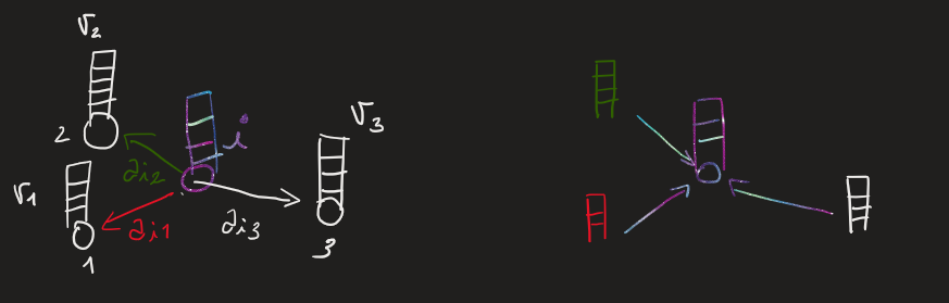 The last piece of the puzzle is the $V$ matrix of regular attention. As we discussed previously, it can be thought of as a vector-valued function defined on nodes, where individual vectors are rows $V_i$.