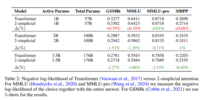 As we’ve discussed, one of the key elements of depth is multi-token representation-learning. Another way to view it, is that individual tokens are in a constant relay race: each token wants to get to a target representation, but needs crucial information from other tokens’ representations to do so. If the proper representation is very hard to find, the model eventually runs out of depth to message-pass. 2-simplicial attention goes in the direction of fixing this, because it combinatorially opens up surface area for the model to do message-passing, for each block. Of course, the present one is just its first, prototypal iteration, which will inevitably change in the future.