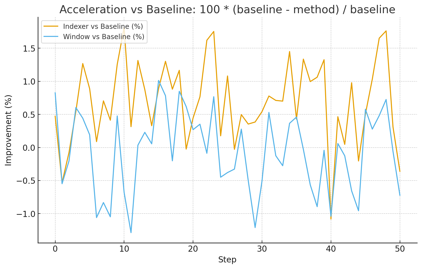 Overall, though, our acceleration is of an average of 0.76% (so barely noticeable) with respect to the Sliding Window Attention version.