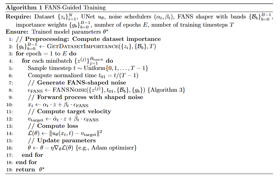 Step 8: Return Shaped Noise The final output \(\epsilon_{\text{FANS}} \in \mathbb{R}^{N \times C \times H \times W}\) satisfies: