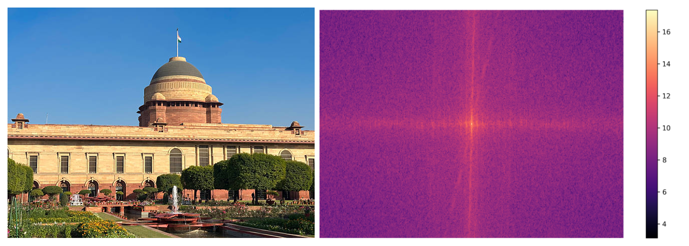 Let’s say we have an image \(x \in \mathbf{R}_{H \times W\times C}\). Its pixels are coeffcient of a standard basis \(\mathcal{B} = \{ \mathbf{e}_1, \mathbf{e}_2, \dots, \mathbf{e}_n \} \subset \mathbb{R}^n\). In the spatial domain, the image is defined as a linear combination of standard basis vectors, where each pixel represents a local real-valued intensity. When we apply the Discrete Fourier Transform(DFT) to this image, it performs unitary change of basis giving us the frequency domain equivalent of the image. The dimension of the fourier and the pixel image remains the same but in fourier domain the coefficients of the basis becomes complex valued.